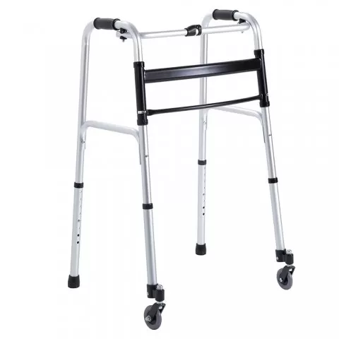 Cadru de mers pliabil, 2 roți mobile față, spate fix - RP734 - Cadru de mers pliabil realizat din tub de aluminiu anodizat.
