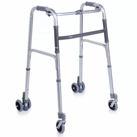 Caracteristici: Cadrul are patru roti pivotante, dintre care cele din spate sunt roti duble mobile, cu autoblocare; Realizat din tub de aluminiu anodizat; Forma trapez; Dimensiuni: Reglare in inaltime: de la 85 la 103 cmla fiecare 2,5 cm Dimensiuni de baza: A: 65 cmB: 57 cmC: 60 cm Greut...