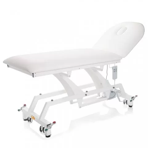 Canapea electrica de consultatie cu roti, blat 90 cm, MORETTI - MI391 Produs conceput pentru utilizare în medii medicale și de îngrijire, cu accent pe funcționalitate și utilizare practică. Canapea electrica de consultatie realizata pe structura rectangulara din otel vopsit in alb, reglabila pe ina...