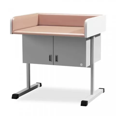 • Masa de examinare pentru sugari, prevazuta cu dulap, potrivita pentru orice unitate medicala. Masa de infasat cu spuma moale acoperita cu material de buna calitate, care asigura o durabilitate ridicata a produsului, un aspect placut și usurinta in curatare. Baza este realizata dintr-o structura stabila din otel vopsit cu pulbere, de culoare alba.