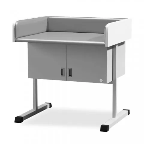 • Masa de examinare pentru sugari, prevazuta cu dulap, potrivita pentru orice unitate medicala. Masa de infasat cu spuma moale acoperita cu material de buna calitate, care asigura o durabilitate ridicata a produsului, un aspect placut și usurinta in curatare. Baza este realizata dintr-o structura stabila din otel vopsit cu pulbere, de culoare alba.