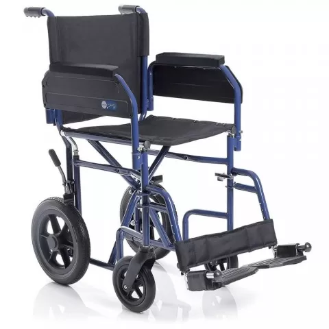 Carucior cu rotile pliabil transport pacienti, tranzit - CP625 Skinny Go Carucior cu rotile pliabil pentru transport pacienti cu handicap, realizat pe cadru din otel vopsit, tip tranzit, disponibil in diverse variante: cu sezut de 40 cm si 43 cm; buzunar spate pentru transportul actelor, manere det...