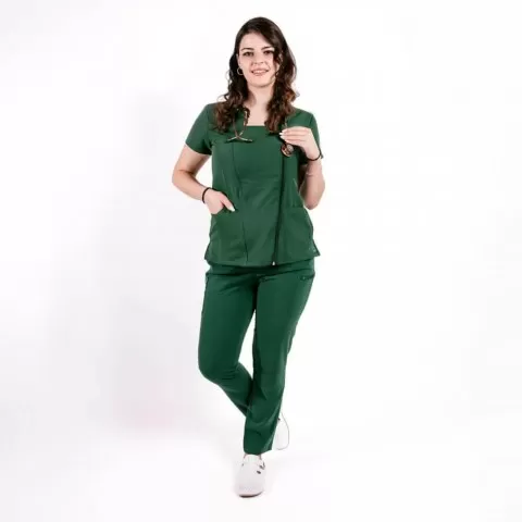 Costumul medical Lotus Flex se evidentiaza prin: Echipament practic pentru dotări medicale, util atunci când ai nevoie de organizare și manevrare simplă. Material cu tesatura elastica (stretch) care urmeaza linia corpului și ofera o senzatie de confort. Croi cambrat, ce avantajeaza orice silueta. R...