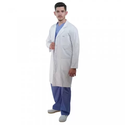 Halat alb cu maneca lunga pentru barbati - A17 Echipament orientat spre uz medical, conceput pentru utilizare confortabilă și operare simplă, atât de personal, cât și de specialiști. Aspect elegant, confort maxim, rezistenta sporita. Halat croiala dreapta, guler rever închidere cu nasturi, maneca l...