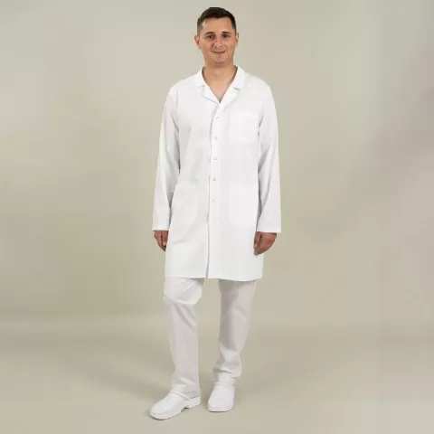 Halat medical alb 3/4 cu rever - Robert Uniformă medicală concepută pentru un aspect îngrijit și confort în activitatea zilnică, potrivită pentru multiple specializări. Halatul medical clasic Robert 3/4, cu capse, este un halat cu un aspect elegant, confort maxim și rezistenta sporita, cu guler rev...
