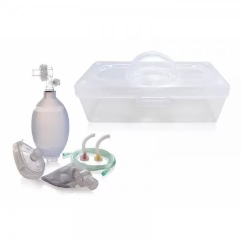 Kit de resuscitare adulti - RA141 Dispozitiv medical conceput pentru utilizare profesională, oferind performanță și fiabilitate în examinări clinice. Kitul contine: 1 balon de resuscitare din silicon, autoclavabil 1 masca de resuscitare nr. 5 1 rezervor de 2700 ml, cu valva 2 canule Guedel nr 4/5 1...