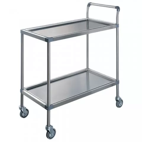 Masuta instrumentar 75x50 cu doua rafturi detasabile din inox - M600879/I Echipament destinat utilizării profesionale, gândit pentru organizare eficientă și întreținere facilă, în funcție de specificațiile produsului. Cadru din otel inoxidabil montat pe roti cu diametru de 80 mm Doua tavite detasab...