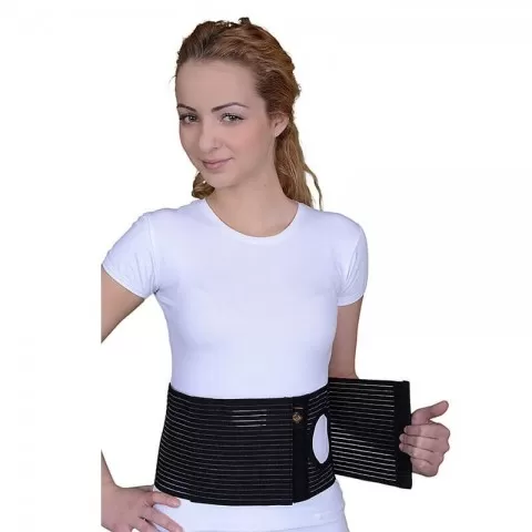 Orteza Corset abdominal cu gaura - ARC420S Echipament pentru reabilitare, potrivit pentru utilizare acasă sau în centre specializate. Modelul este special conceput pentru a fi utilizat postoperator in caz de colostomie, fiind prevazut cu gaura pentru aplicarea pungii pentru colostomie. Este realiza...