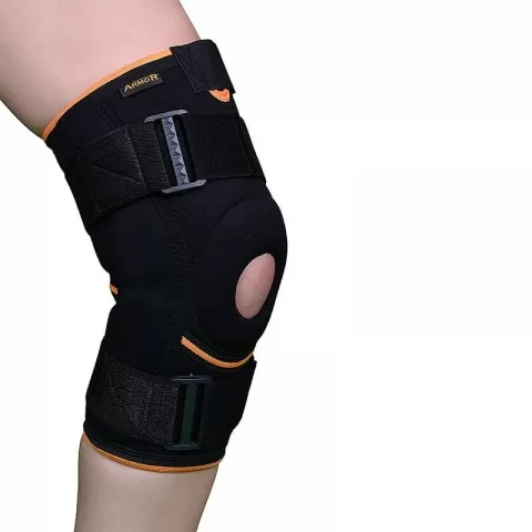 Orteza genunchi ARK2104 este realizata din neopren cu atele laterale metalice cu articulatie, care confera un suport maxim ligamentelor colaterale și genunchiului.
