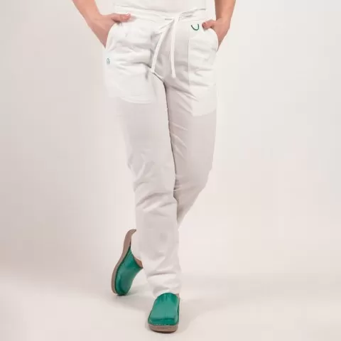 Pantaloni medicali Lotus Flex, stretch, cu elastic si snur, alb, CVC-SP2