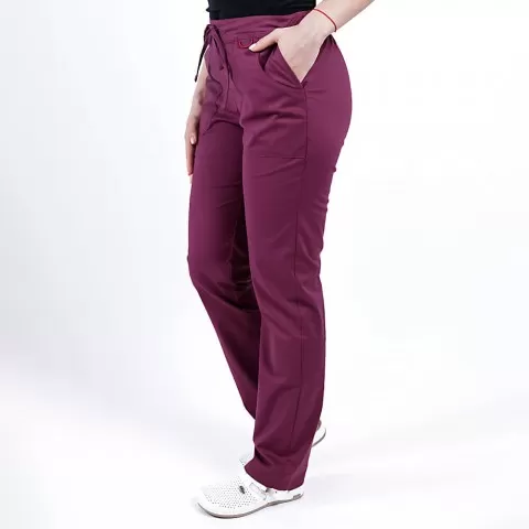 Pantaloni medicali Lotus Flex, stretch, cu elastic si snur, wine, CVC-SP2