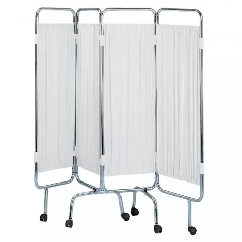 Paravan cu patru segmente pe cadru din otel cromat - M600826 Soluție potrivită pentru dotări medicale, realizată pentru manevrare ușoară și utilizare constantă, Realizat pe structura din otel cromat cu 4 sectiuni; Perdele din plastic cu patru segmente, lavabile, ignifuge; Paravanul este mobil, mon...