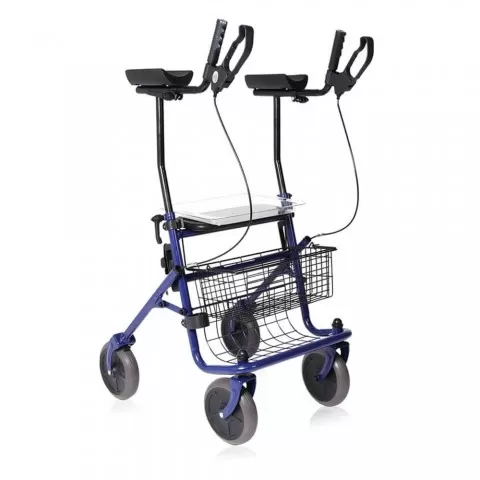 Rolator cu 4 roti, sezut, cos si suport antebrat - RP691 ERA Rolator realizat din otel vopsit, culoare bleumarin, stabil, usor de utilizat, cu manere ergonomice reglabile in inaltime si suport pentru antebrat, cu doua roti pline fixe pe partea din spate prevazute cu frane cu autoblocare si doua rot...