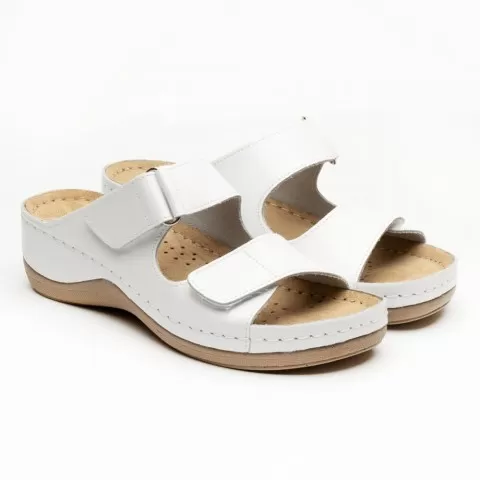 Saboti dama, de vara, din piele, Leon 905, alb