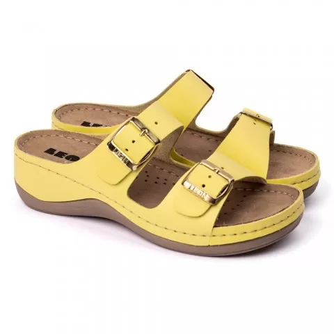Saboti dama, de vara, din piele, Leon 908, galben