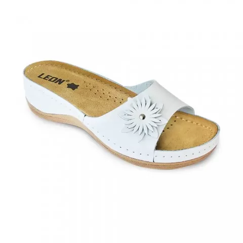 Saboti dama, de vara, din piele naturala, Leon 915, alb