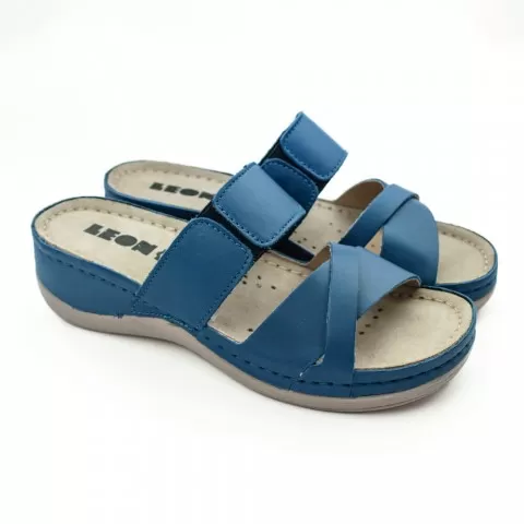 Saboti dama, din piele, de vara, Leon 909, bleumarin