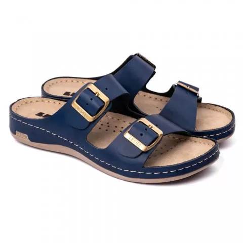 Saboti dama Leon 955, de vara, din piele, bleumarin | Saboti dama | Incălțăminte și saboți medicali | medicmag.ro