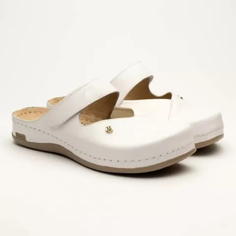 Saboti medicali, de dama, din piele, alb, Leon 953