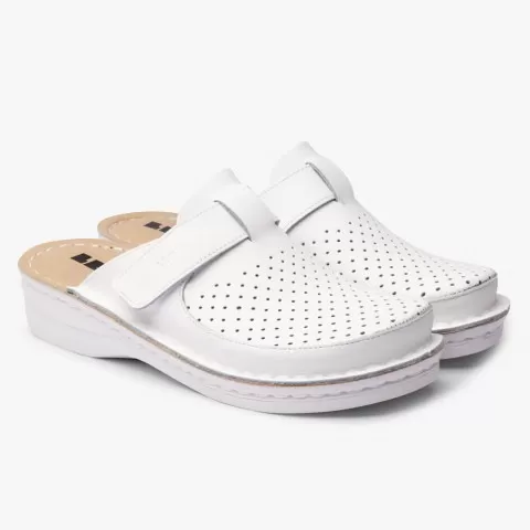 Saboti medicali, de dama, din piele, Leon 263 Bakkar, alb mat | Saboti dama | Incălțăminte și saboți medicali | medicmag.ro