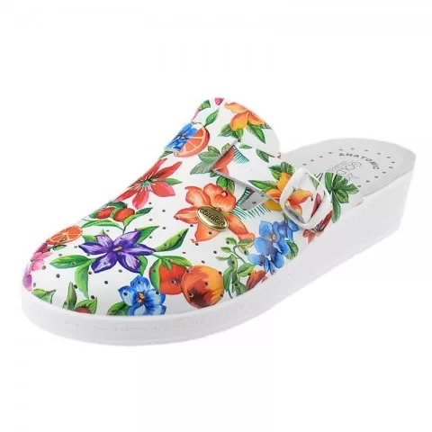 Saboti medicali din piele, cu imprimeu Fantasia 8 - Goldenfit 708/L Încălțăminte medicală practică, potrivită pentru personal din clinici și spitale, cu detalii complete mai jos. Linia de saboti din gama GOLDENFIT este conceputa pentru toate mediile profesionale; de la clinici private, spitale, cen...