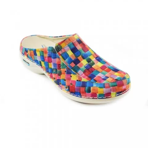 Saboti Wash'Go gama Berlin, patratele colorate Echipament practic pentru dotări medicale, util atunci când ai nevoie de organizare și manevrare simplă. Wash'Go - Incaltaminte pentru uz profesional, cu un aspect elegant, realizata din materiale rezistente la uzura. Talpă usoara și flexibila din poli...