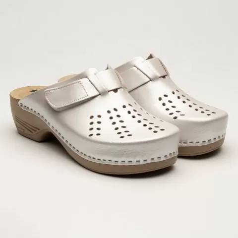 Saboti medicali Leon 161, de dama, din piele, alb perlat