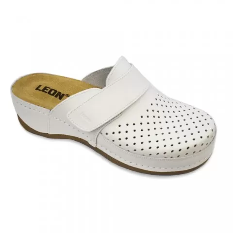 Saboti medicali Leon 2022, de dama, din piele, alb