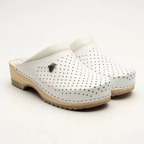 Saboti medicali Leon B2, cu talpă din lemn, alb