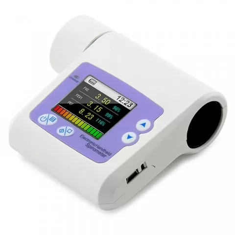 Spirometru digital cu ecran LCD - Contec SP10 Instrument medical profesional, proiectat pentru acuratețe și utilizare îndelungată în cabinet sau clinică. Spirometrul este un dispozitiv portabil, de buzunar, pentru verificarea afectiunilor pulmonare. Spirometrul SP10 masoara nivelul debitului expira...