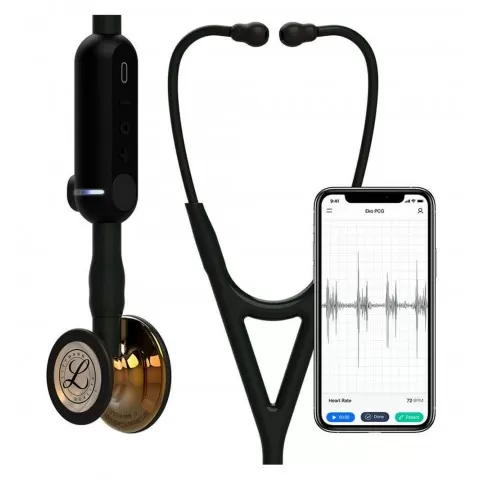 Stetoscop electronic 3M™ Littmann® CORE Digital, Negru complet, capsula cupru lucioasa (Black Tube, Stem & Headset/High-Polish Copper Chestpiece)