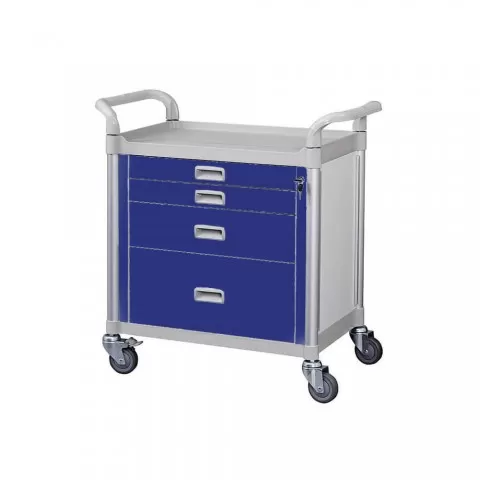 • Troliu cu top din PP ușor de curățat și rezistent, cu 4 sertare pentru medicamente cu incuiere centralizata. Structura din aluminiu este rezistenta la coroziune, lavabila, ușor de curățat și dezinfectat.