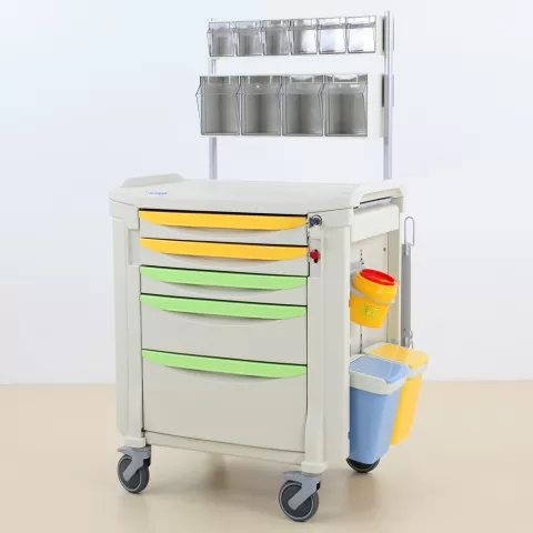 Troliu pentru urgente - NEOF-63 Echipament destinat utilizării profesionale, gândit pentru organizare eficientă și întreținere facilă, în funcție de specificațiile produsului. Structura principala este realizata din material HDPE obtinut prin suflare, cu rezistenta ridicata, iar constructia interio...